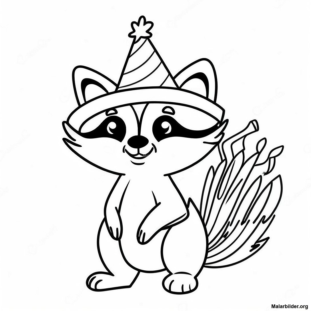 Ladda ner utskrivbar PDF av Tvättbjörn Med Partymössa Målarbild