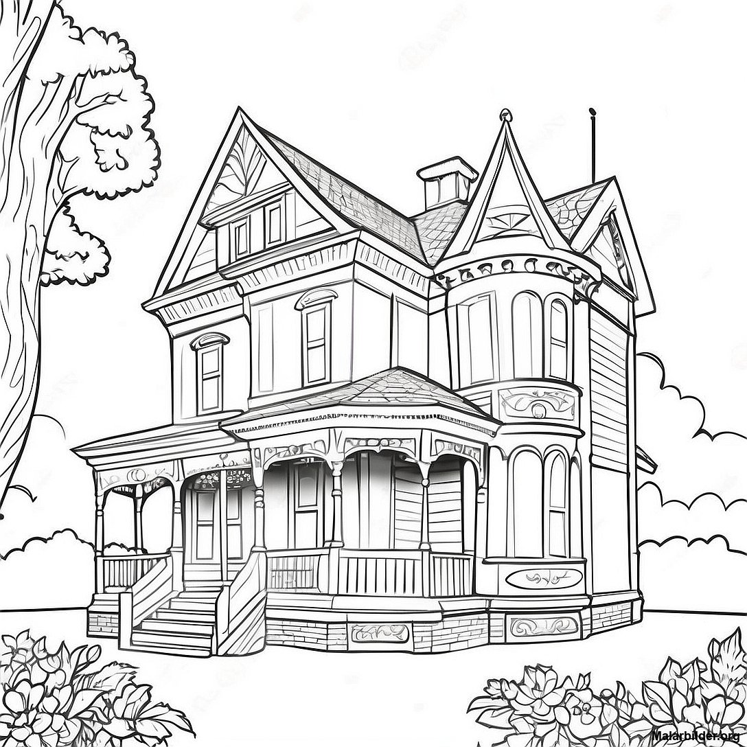 Ladda ner utskrivbar PDF av Victorianskt Hus Målarbild